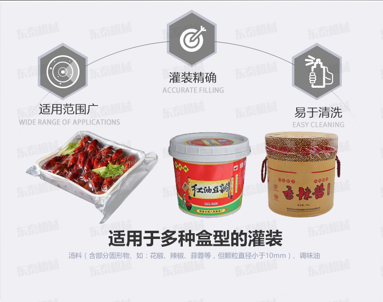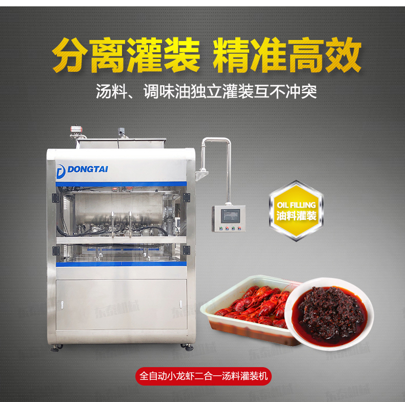 紅油辣椒醬自動灌裝機(jī)介紹: 紅油辣椒醬自動灌裝機(jī)針對于調(diào)味小龍蝦深加工行業(yè)的調(diào)味油、湯料的加注,整個系統(tǒng)為直線式傳送結(jié)構(gòu),湯料、調(diào)味油可在同一臺設(shè)備上實(shí)現(xiàn)準(zhǔn)確定量,且湯料、調(diào)味油為獨(dú)立的