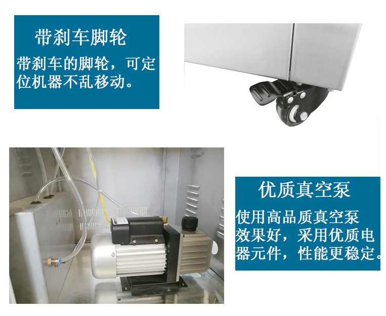 電源 220/50HZ  電機(jī)功率 0.36KW  熱封功率 0.95KW  抽氣速率 6.5m³/h  充氣速率
