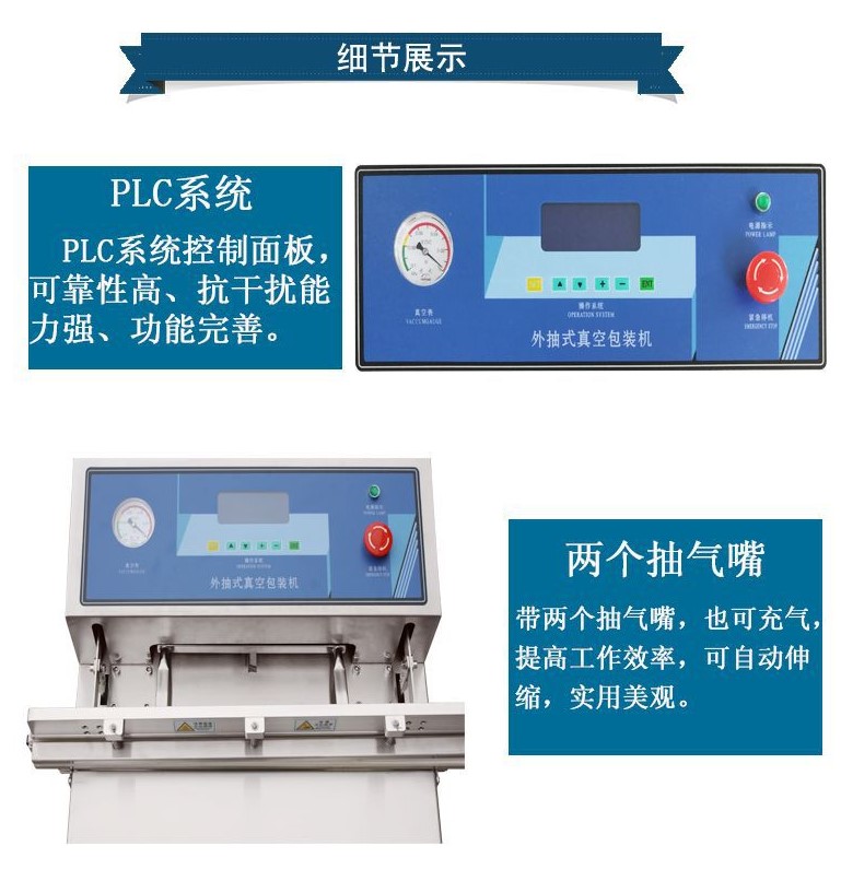 電源 220/50HZ  電機功率 1KW  熱封功率 0.95KW  抽氣速率 20m³/h  充氣速率 0.85mpa
