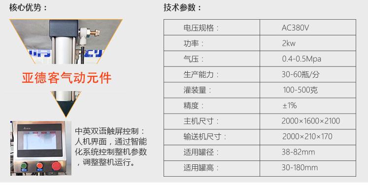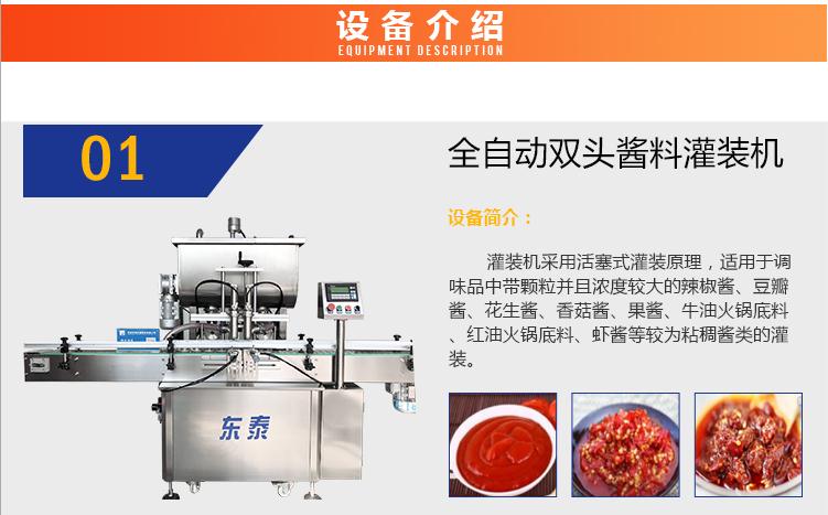 產品簡介 灌裝機采用活塞式灌裝原理,適用于調味品中帶顆粒并且濃度較大的辣椒醬、豆瓣醬、花生醬、香菇醬、果醬、牛油火鍋底料、紅油火鍋底料、蝦醬等較為粘稠醬類的灌裝。 產品優勢 1、該機